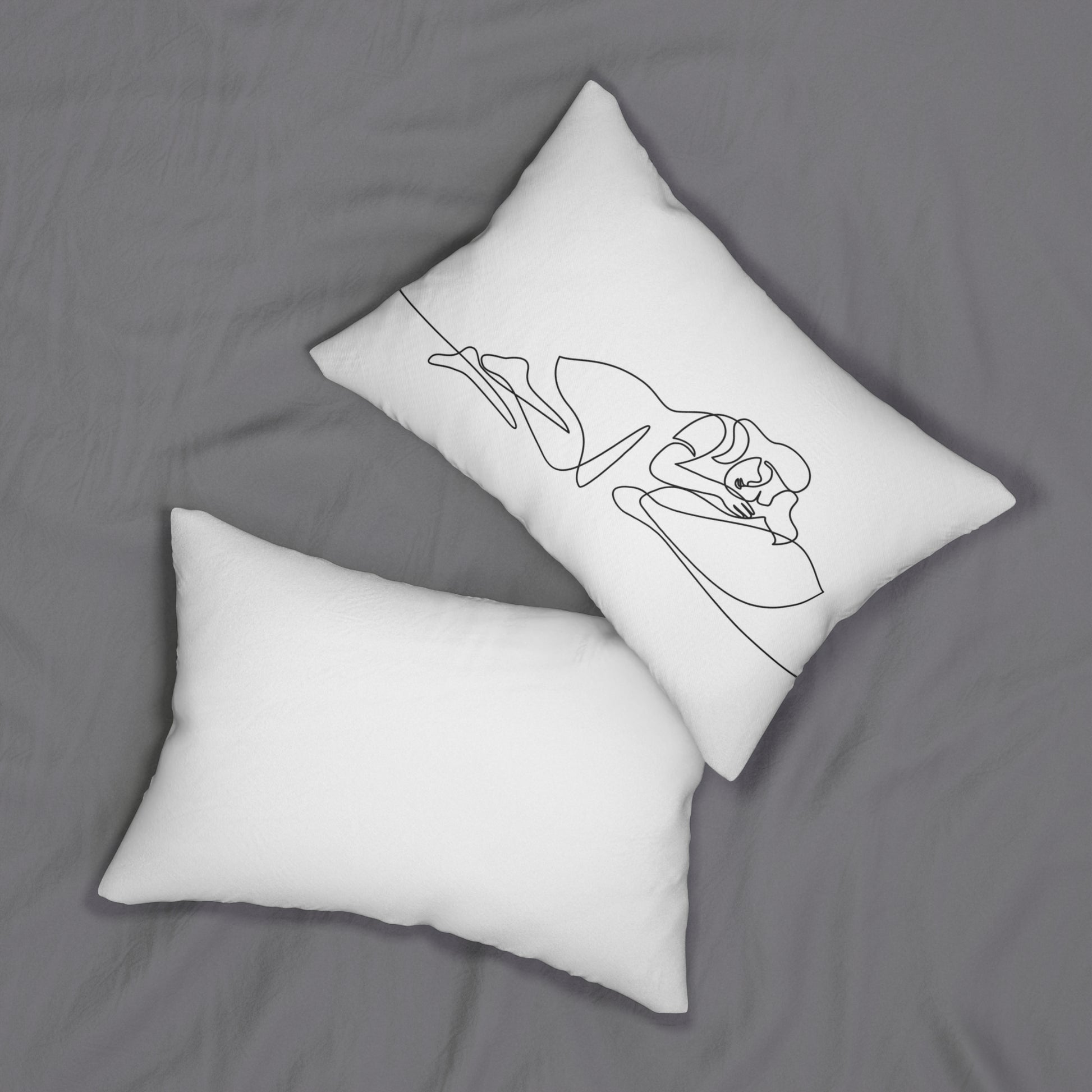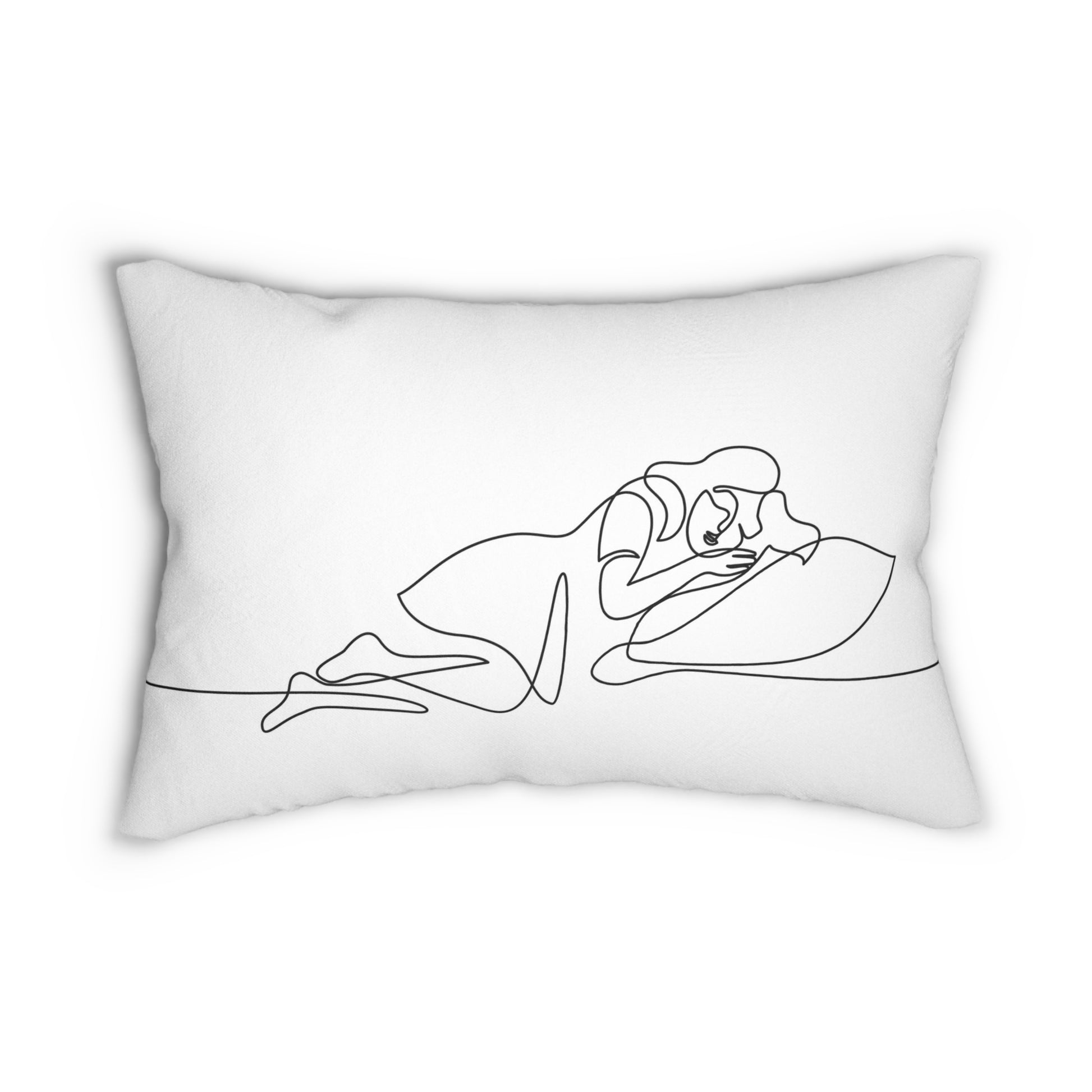 A calm, minimalist lumbar pillow that brings quiet warmth to restful corners. The cover features a single-line illustration of a sleeping figure, drawn in fluid strokes that feel intimate and uncluttered. It slips into sofas, daybeds, and cozy reading nooks to support your lower back while adding a subtle artistic touch. Lightweight and resilient, the spun polyester fabric keeps the silhouette crisp and the print clear, while the removable recycled-poly insert offers dependable loft. Tuck it behind you during slow mornings, let it soften an afternoon nap, or place it on a guest bed to convey thoughtful simplicity.