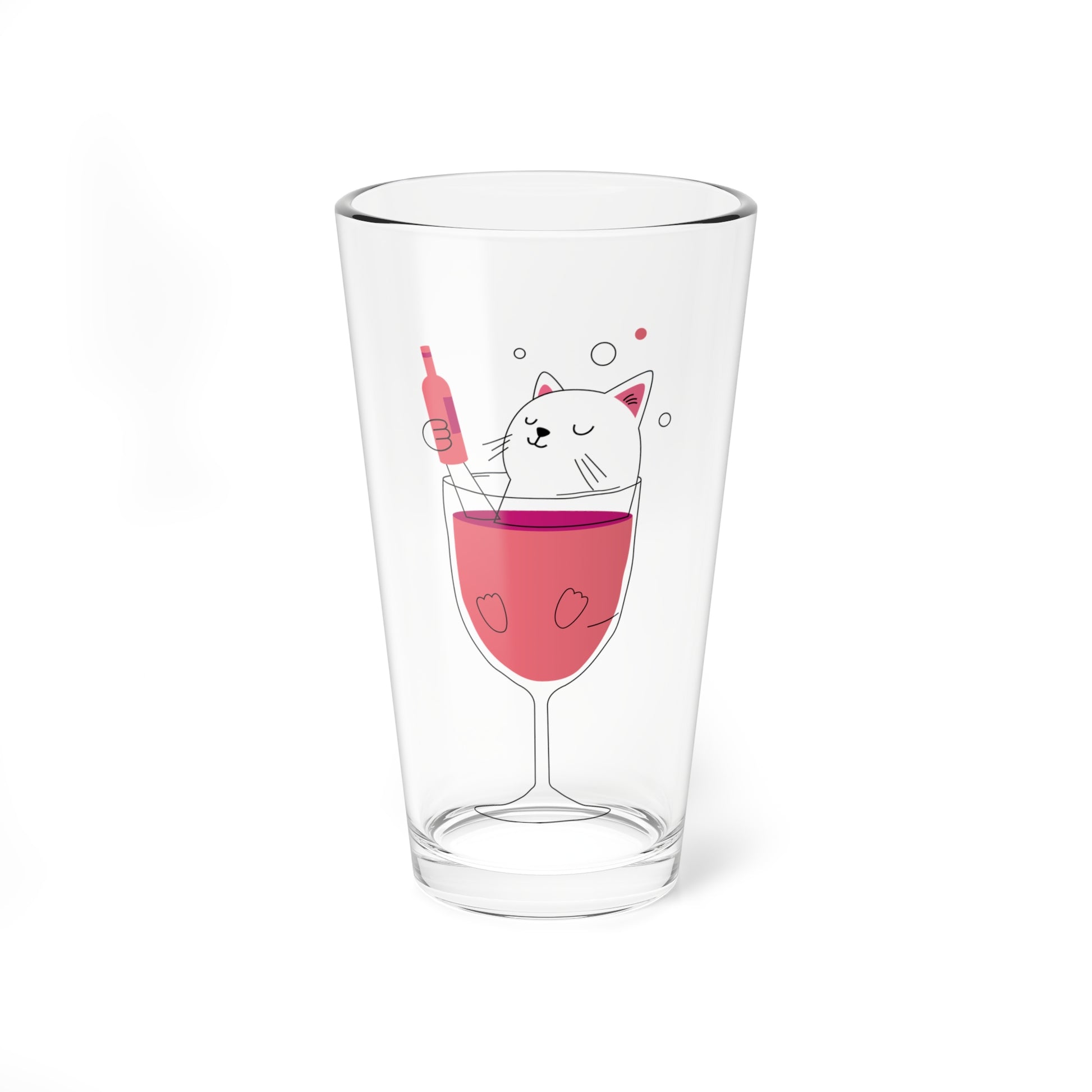 Mixing Glass — Cute Cat in Wine Glass 16oz Mixing Glass